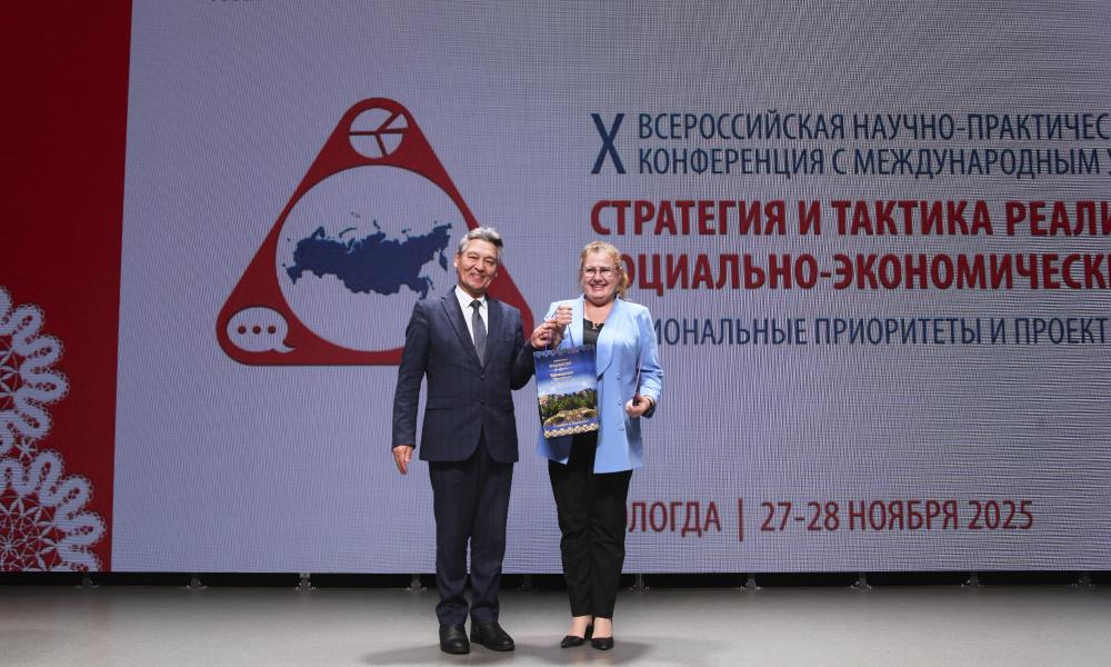 Церемония официального открытия конференции началась с вручения Почетной грамоты от Министерства науки и высшего образования Российской Федерации коллективу ФГБУН «Вологодский научный центр РАН» за значительные заслуги в сфере научной деятельности, добросовестный труд и в связи с 35-летием со дня основания.