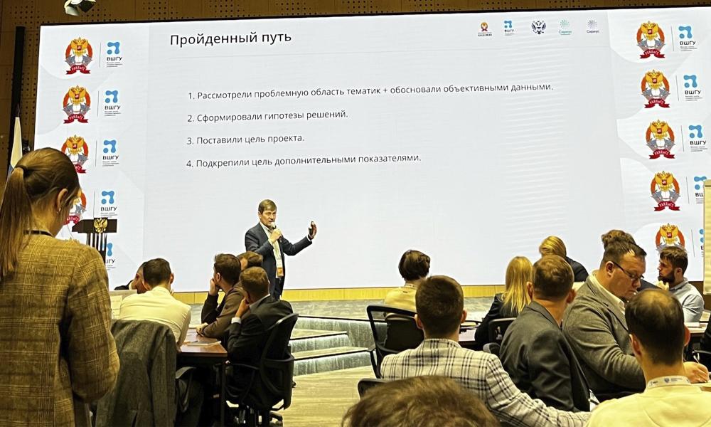 Блок практической работы был организован Экспертом Центра «Цифровая школа госуправления» Института ВШГУ РАНХиГС Артемом Анатольевичем Чаленко и директором по развитию Центра индустрии образования (направление EdTech, экосистема Сбера) Григорием Игоревичем Телегиным. Вологодский научный центр РАН представила ведущий научный сотрудник, заведующий центром социально-демографических исследований Мария Андреевна Груздева. На втором модуле шла активная проектная работа и состоялась первая очная предзащита перед специалистами ВШГУ РАНХиГС и представителями Администрации Президента.